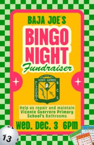 Join Grom and Rachel at Baja Joe’s Wednesday Dec. 3rd 6pm for a night of BINGO for a cause!