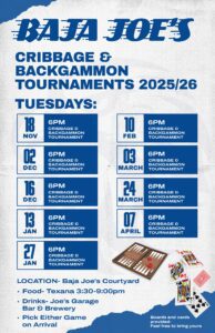 List of Scheduled Bands/Events at Baja Joe’s 2025-2026