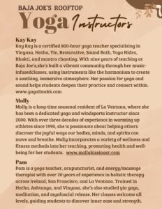 Classes are also offered by other incredible instructors, Molly and Pam, each bringing their own unique energy and style to the rooftop. Scroll below for the full schedule, class details, and instructor bios.